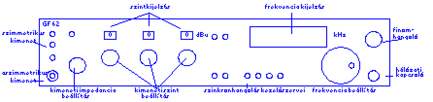 A mérőadó kezelőszerveinek elrendezési rajza látható a következő ábrán: